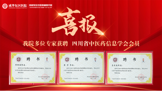 近日,我院再传捷报!经四川省中医药信息学会严格评审与遴选,黄宏、马长春、周树林三位主任凭借扎实的中医药专业功底、丰富的临床实践经验以及在中医药信息研究领域的积极探索,成功当选为四川省中医药信息学会会员···.........